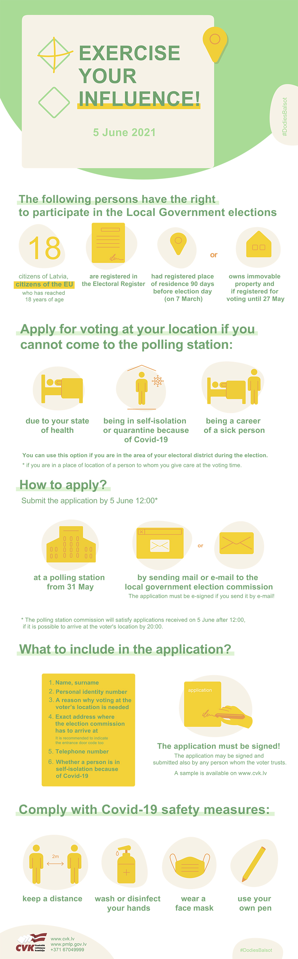 ! In Rēzekne municipality and Varakļāni municipality elections have been cancelled! Elections in these electoral districts are scheduled for September 11, 2021.
