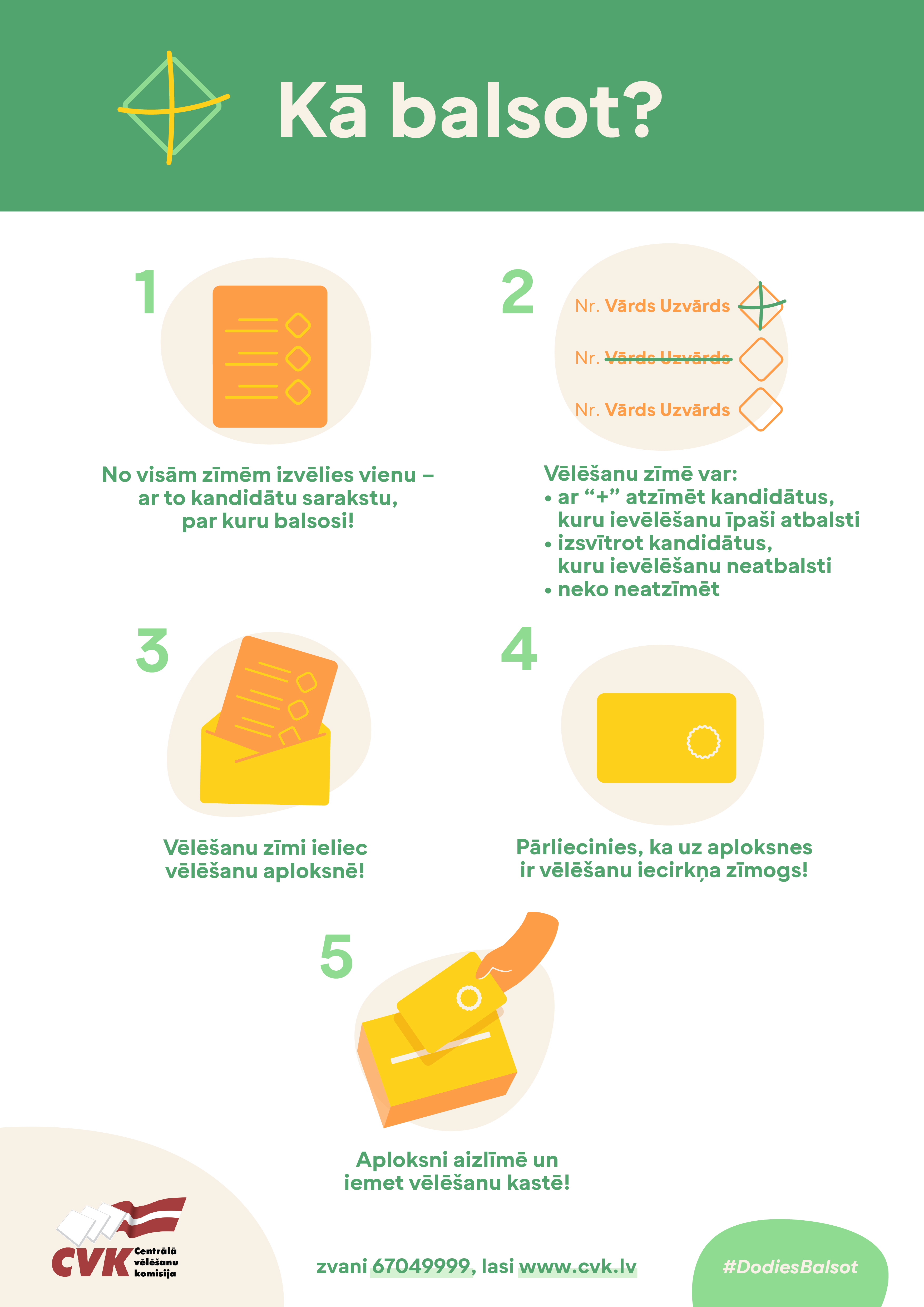 - Lai nobalsotu, no visām zīmēm jāizvēlas viena – ar to kandidātu sarakstu, par kuru vēlaties balsot.