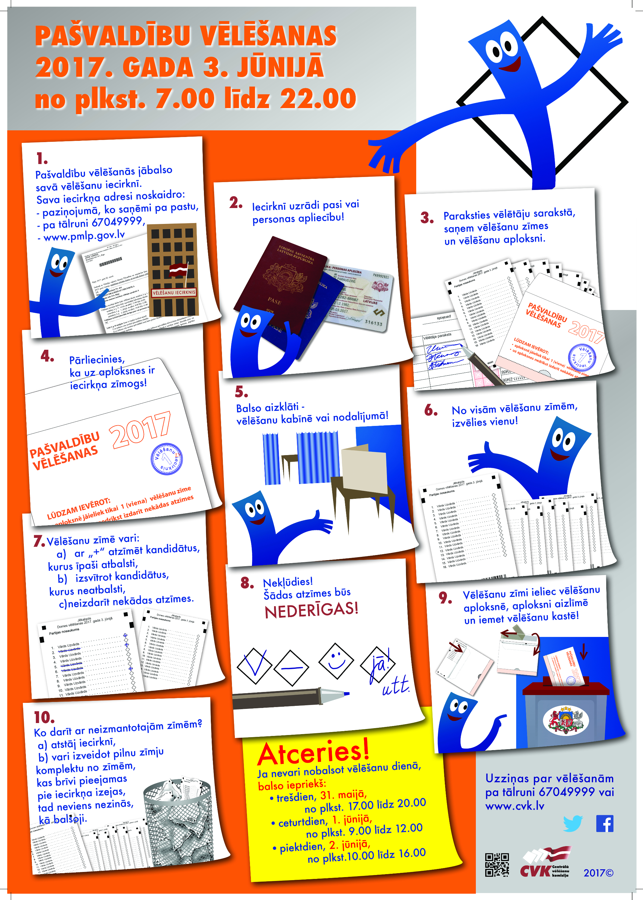 - Saņemot balsošanas materiālus, jāpārliecinās, vai uz vēlēšanu aploksnes ir attiecīgā iecirkņa zīmogs un vai jums ir izsniegtas visas pašvaldībā pieteikto kandidātu sarakstu zīmes.